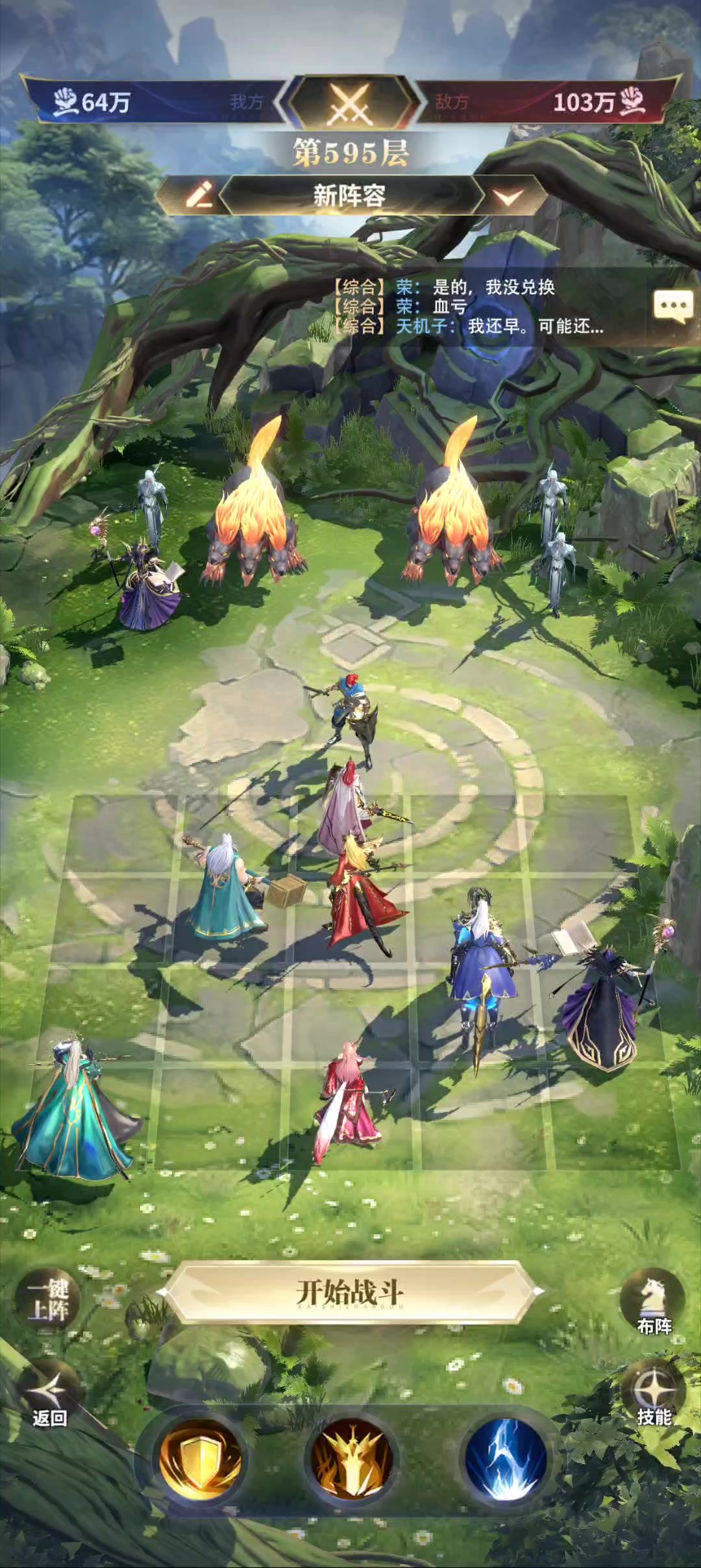 655:战力太低打不过,睡了一晚上过的,阵可以参考。要点是怎么让正义不被熊秒。660:思路是突袭站位,让突袭打掉后面五个法师牧师,就好过。