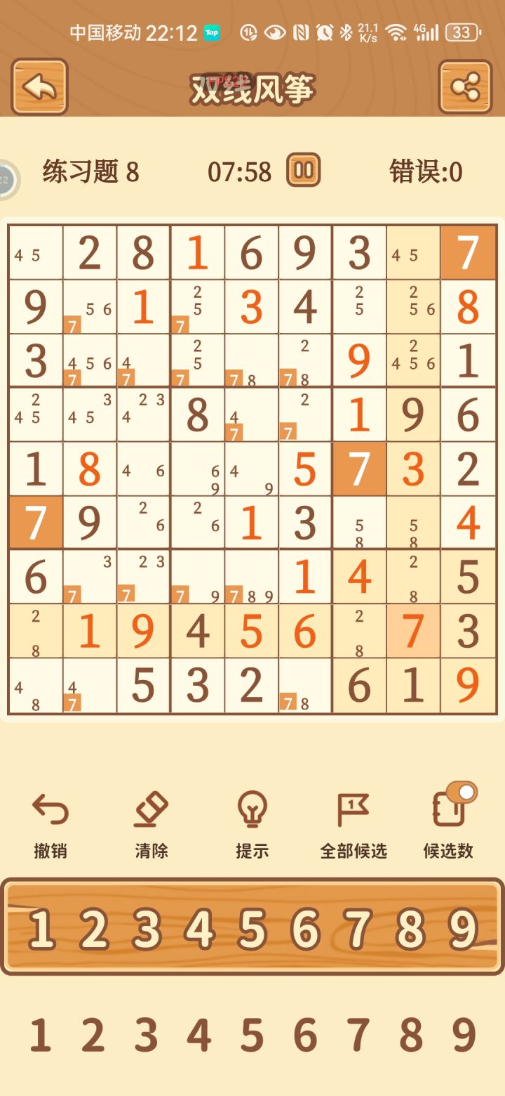 如图,r2c8应该是8,手滑填入7也没有提示错误