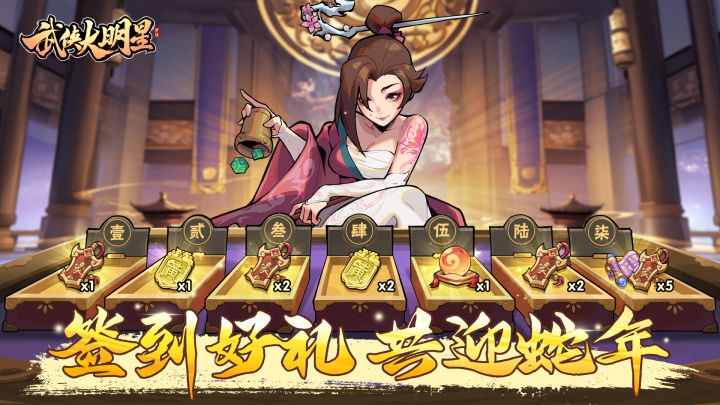 各位少侠好~天下第一联动伴随着蛇年新春佳节即将来临,秀秀也准备好了丰厚的福利赶来啦!完成签到即可领取每日奖励,15连抽正等着少侠带回家,其中还有用于招募新侠客「成是非」必不可少的护龙令哦~ 🏮七日签到🏮参加每日签到活动,签到满7天即可获得【黄字护龙令*3】【豪侠令*10】【无字天书*5】等奖励~ 🏮签到时间🏮2025年1月27日-2025年2月7日 🏮签到奖励🏮在《武侠大明星》