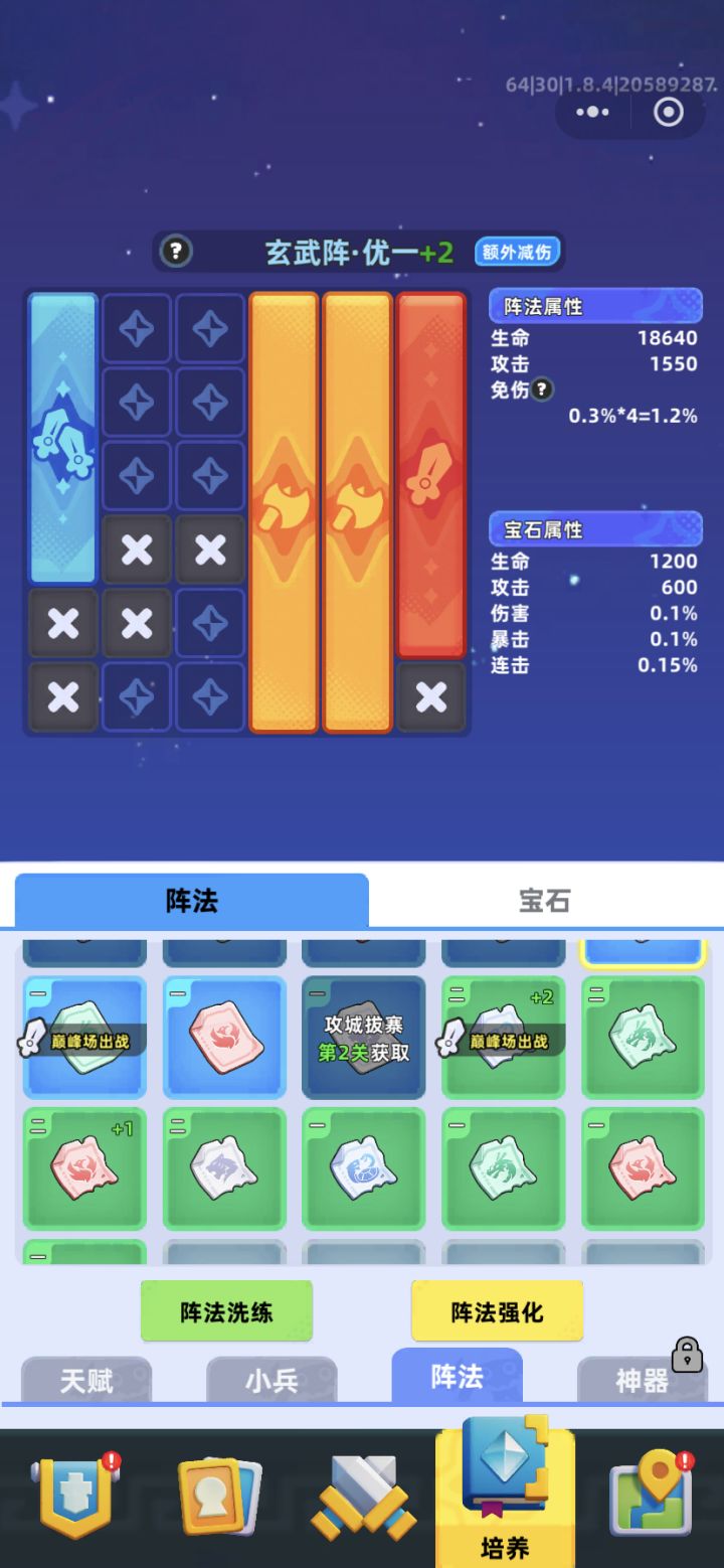 安装进玄武阵法里面翻倍涨啊#小兵大作战 #游戏日常 #抽卡