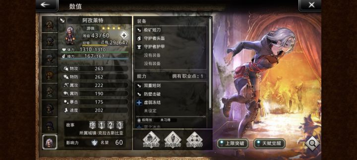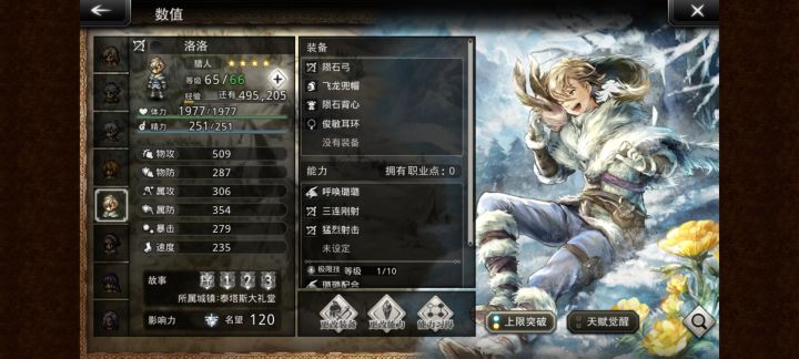 波拉:交替回血后卫回蓝,+15暴击,挂机的神洛洛:前卫+10物攻,弓4,光2,杖1,多维破盾手比利:群体减速,大招减速减物抗,匕2,后期工具约伦:暗2剑3,暴击赋予20增伤,对破防20增伤,会砍人的老六卢塞塔:弓3,群减物抗,增益延长,和比利一样后期也要加班梅贝尔:+15属攻防,-10群属防,增益延长减益缩短五星舞女下位阿孜来特:冰3,20冰增伤,破防减冰抗,群减冰抗,索菲亚失散多年的