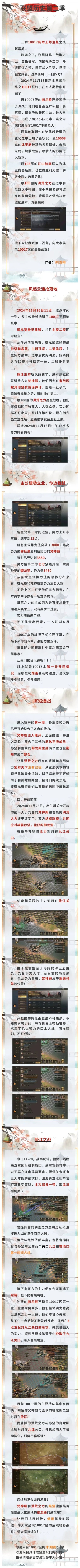 ==三大势力介绍==《空谷幽兰》:战狂盟。占据袁绍、孙坚两地,高战众多。接收《科研》作为二盟的核心,位居本区联盟综合实力榜首《封狼居胥》:金主盟。占据刘备、孟获二州,金主大嘴一挥便是三十万军费,堪称当代糜竺。实力不容小觑(金主发军费时)《星火燎原》:空谷幽兰的老对手,占据马腾州。s2整合了本区空幽之外其他所有盟的活跃玩家,缮甲厉兵正欲伺机而行==战况==[首战](资源州第二天) 空幽二