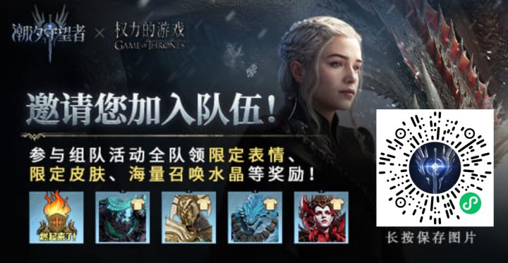 我的队伍码:【XYtAwINQo8NB】,微信小程序搜索“潮汐守望者活动站”,加入我的队伍一起领限定皮肤、表情和召唤水晶等奖励!