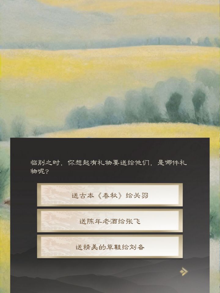 有意思富商送的书、酒和草鞋三选一随便点了书。结果交任务时才意识到要酒才能给张飞,就在点了书出现关二哥时退出游戏重进看看能重选酒不,然后就发现书没了交不了这个任务,武将里关二哥也没有。新手村出不了,哈哈