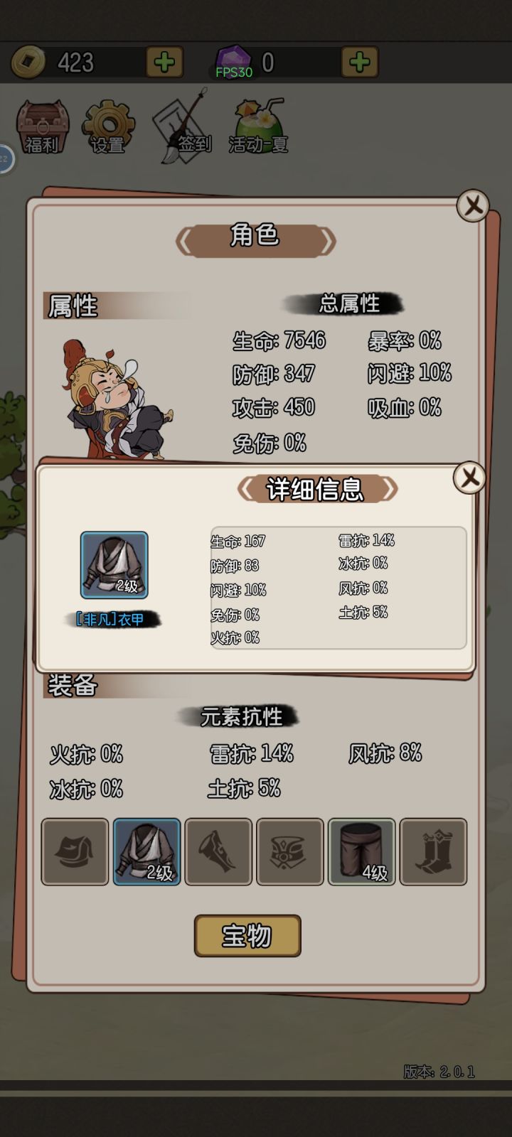 建议:打过第1关送了个传说级的衣服,我想运气咋这么好。打了第2关,第3关后再去看,直接变成了非凡。掉档了。传说的衣服没有截图,但是我记得是金色的~还有游戏看了三个广告,显示红颜的经验已经加成了,然后广告卡住了,重新大退再进去,所有的广告经验都归零。😂😂