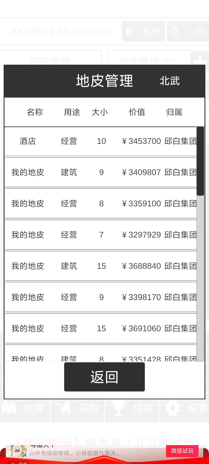 《我的集团》吸引我的地方就是股市!刚进入游戏,直接100万股市开户,用九成钱买股票!区间40至60!开2倍速!到目标后暂停进行买卖!赚到几个亿在搞生产!这个赚钱省心省精力收税还少! 开厂时,工厂名改用产品名,好识别!我选择制造车身!我觉得简单!价格贵!1,建一个农场生产橡胶树就够用!2,建四个化工厂产橡胶。3,建六个钢厂,钢产量低!4,建一个造车厂生产车身,因为车身要资源多,建多了前面跟不上!