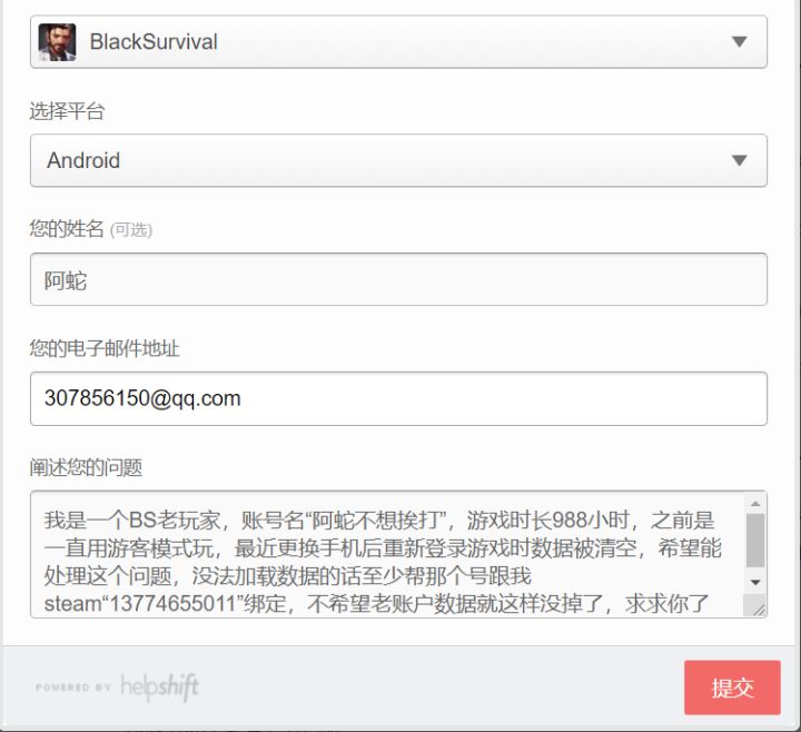steam上的客服网址反馈没法发送我988小时的号数据没了好难受已经发了邮件,但不知道官方能不能看到希望官方看看我,救救孩子吧