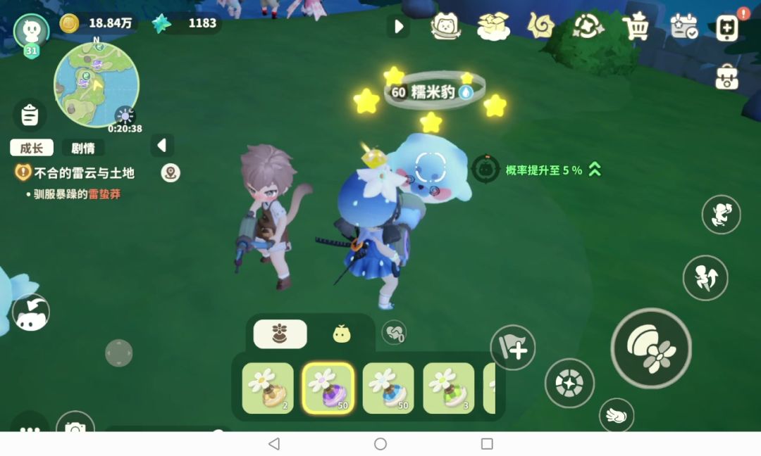 怎么没解锁高级捕捉道具的购买就让玩家能接触到这些捕捉概率极低的宠物了?哦对了,内测的时候好像最高级的道具捕捉概率也是只高一两点#米姆米姆哈 ,玩家反映了之后公测还是这样 有人能数数我用了多少个才捕捉成功吗