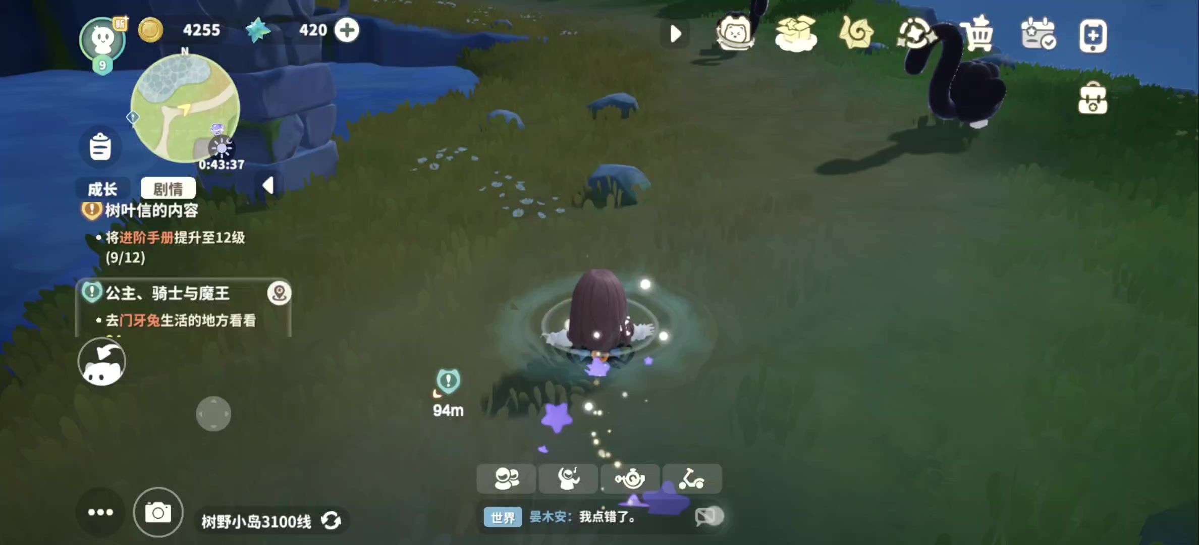 服了呀 在大树野岛 树冠平原的大树那里捉宠物 走到大树下面直接在那游泳了