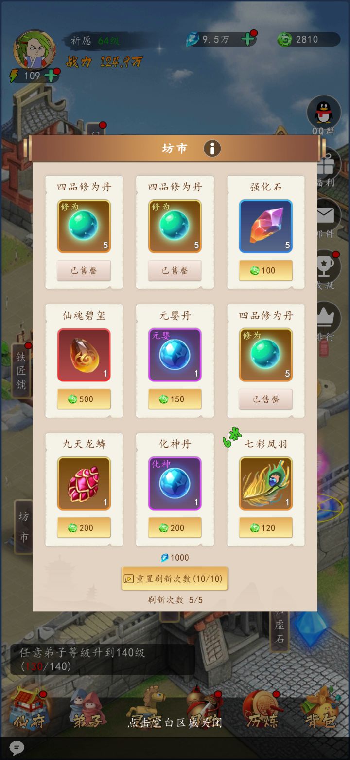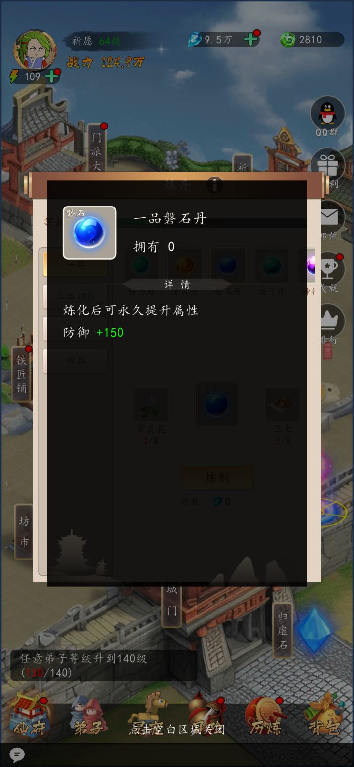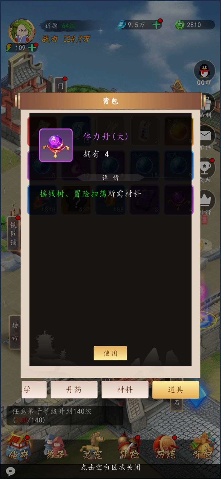 按图来讲一丢丢简单实用的攻略,进游戏先在右上角领每日福利,当前新游免广告直接领,非常舒服的起步体验,领一堆好东西,开局最主要的就是这个《天工开物》是唯一每日奖励出处的东西,能极大的缩短前期发育时间,拿到10本直接升级采药到2级开始采药,到晚上就能到3级,虽然采矿可以做高等级装备,但是没有装备穿不上也白搭,所以第一天的书用来升级采药,囤积经验丹,升级是最主要的每30级战力跨越挺大的,可以穿的装备也跨
