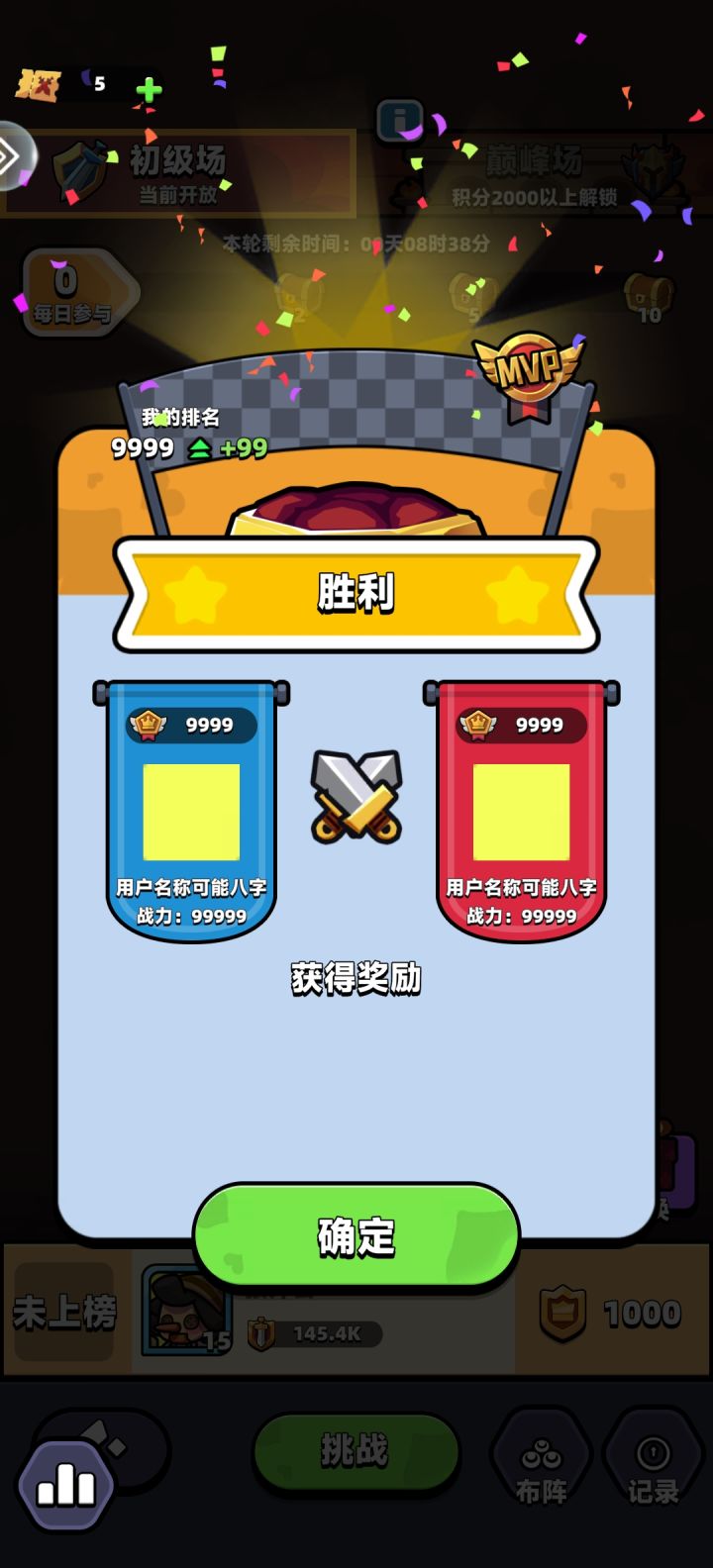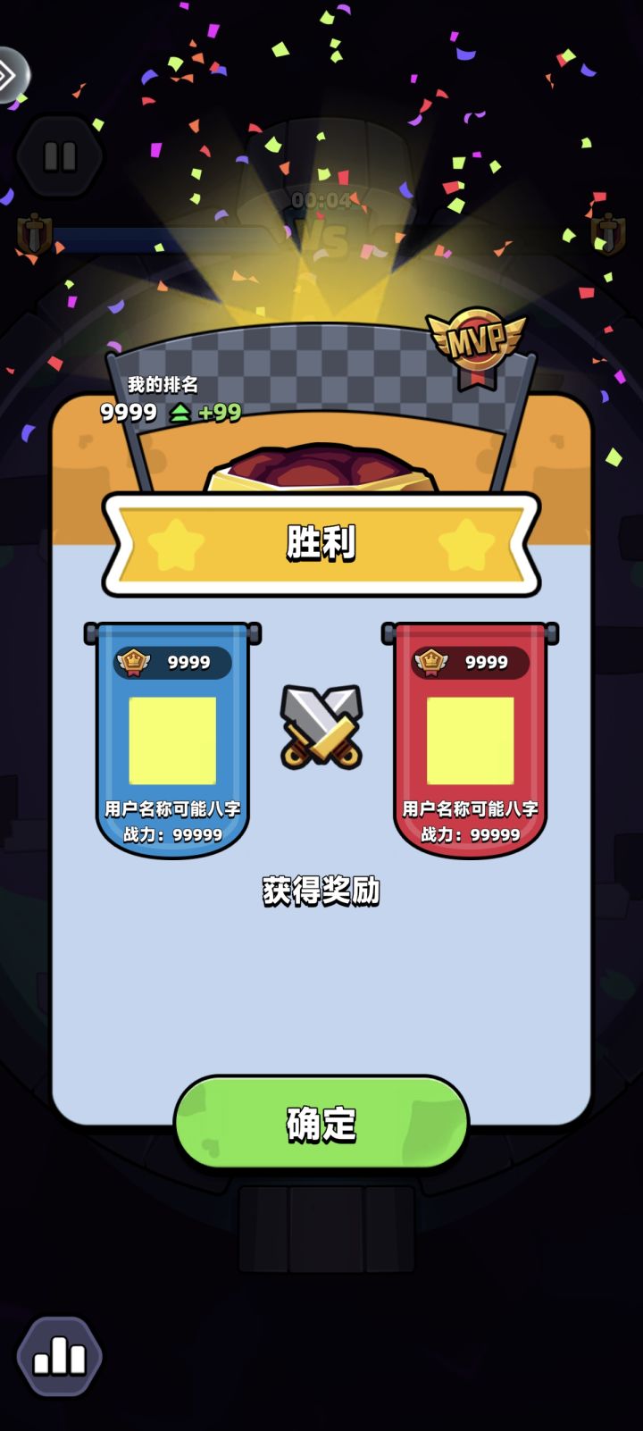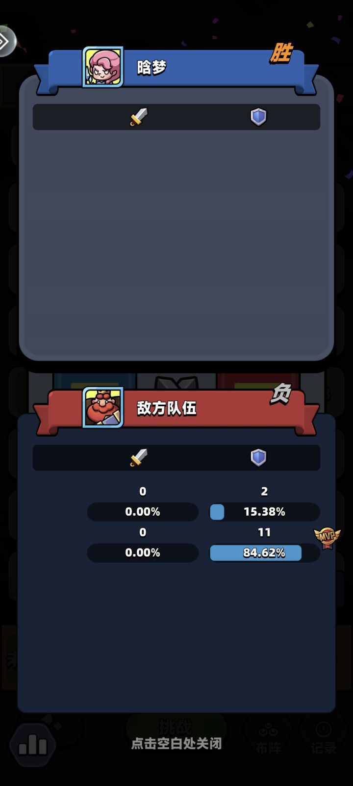 卡竞技赛,没有奖励,只有我的竞技卡消费,点进去赢了,退不出去,一直是这个战胜的画面