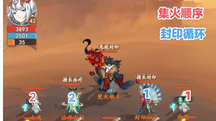 #封神幻想世界创作者计划 #封神幻想世界攻略 今天开服第三天,今天会来妖王四星,不少小伙伴都倒在这里,这一期也简单说一下我们的心得。【队伍阵容】双奶、物理、封印、法术击杀分配:双奶减少队伍压力,不用多说,拉人,奶就完事,双奶压力没那么大封印:封印起手封印女妖,后面就是中排四只轮流封印,注意一个点就是休息的时候免疫封印!物理输出这边去把中间猴子击杀掉,安排群攻和一只宠物守尸即可,注意一下出