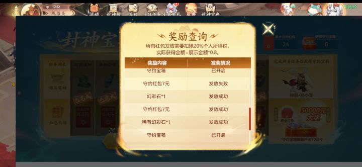 呜呜呜,只有一个人有这个问题吗?红包发放失败了,再没法领怎么办#封神幻想世界 #浅评一下