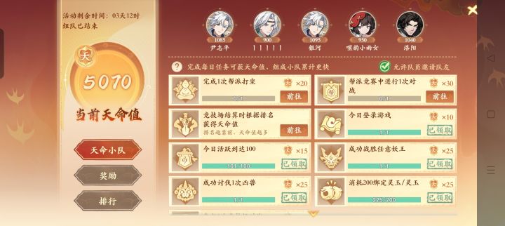 关于天命小队的问题