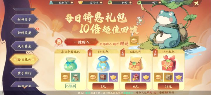 本来氪金就很严重了,好家伙今早上一登录氪金项目又增加好几样。这个每日礼包过分了吧!98的月卡和神武一样,但是人家月卡基本就能跟上大部队了。奉劝别拿玩家不当人