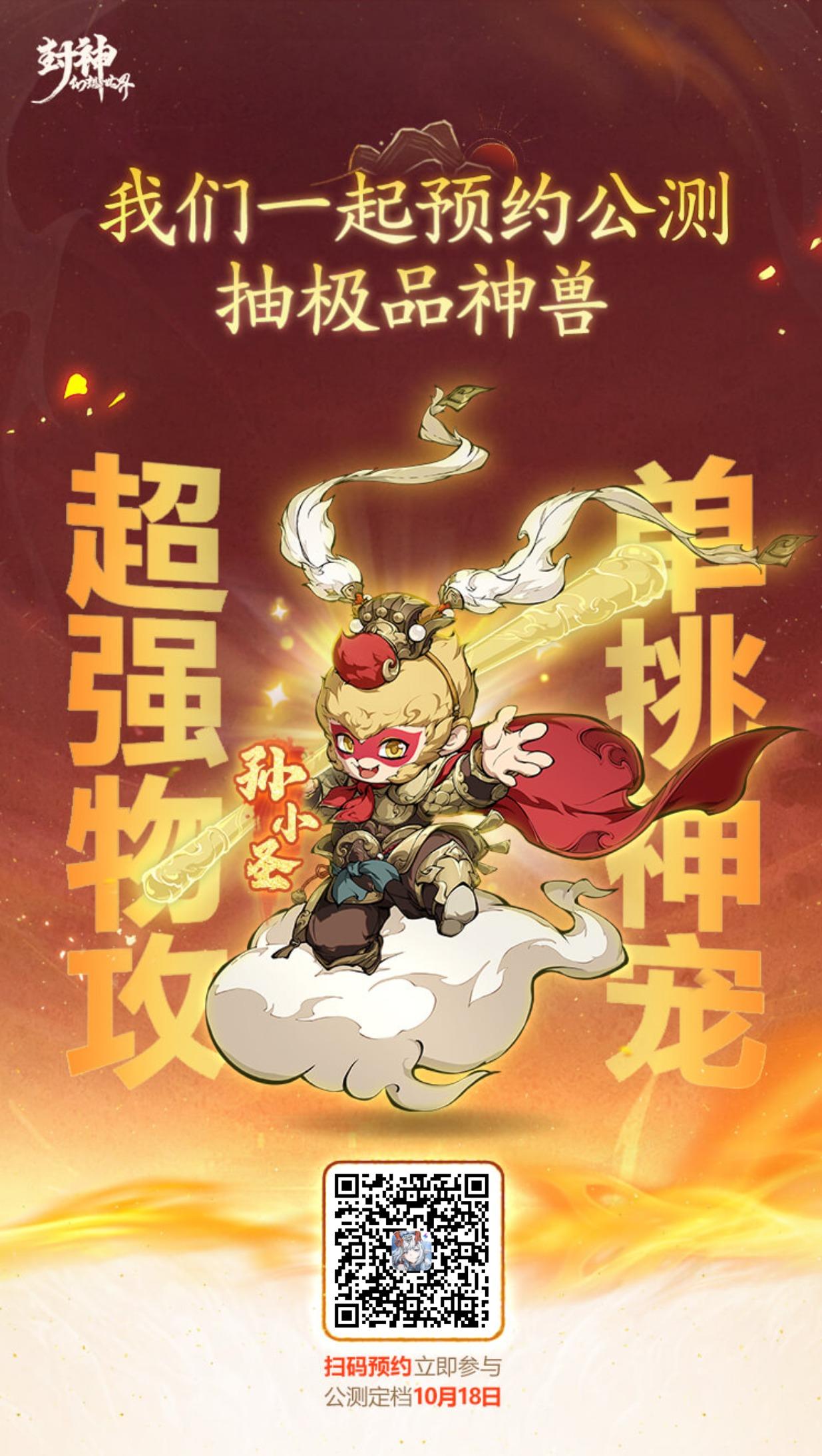 《封神幻想世界》手游公测定档10月18日,我们一起预约,领妲己新皮肤,抽顶级神兽·孙小圣或5万元现金大奖!https://actsapifshxsj.leiting.com/fshxsj/202407/reserve?inviteCode=026V9HF&mid=M489020
