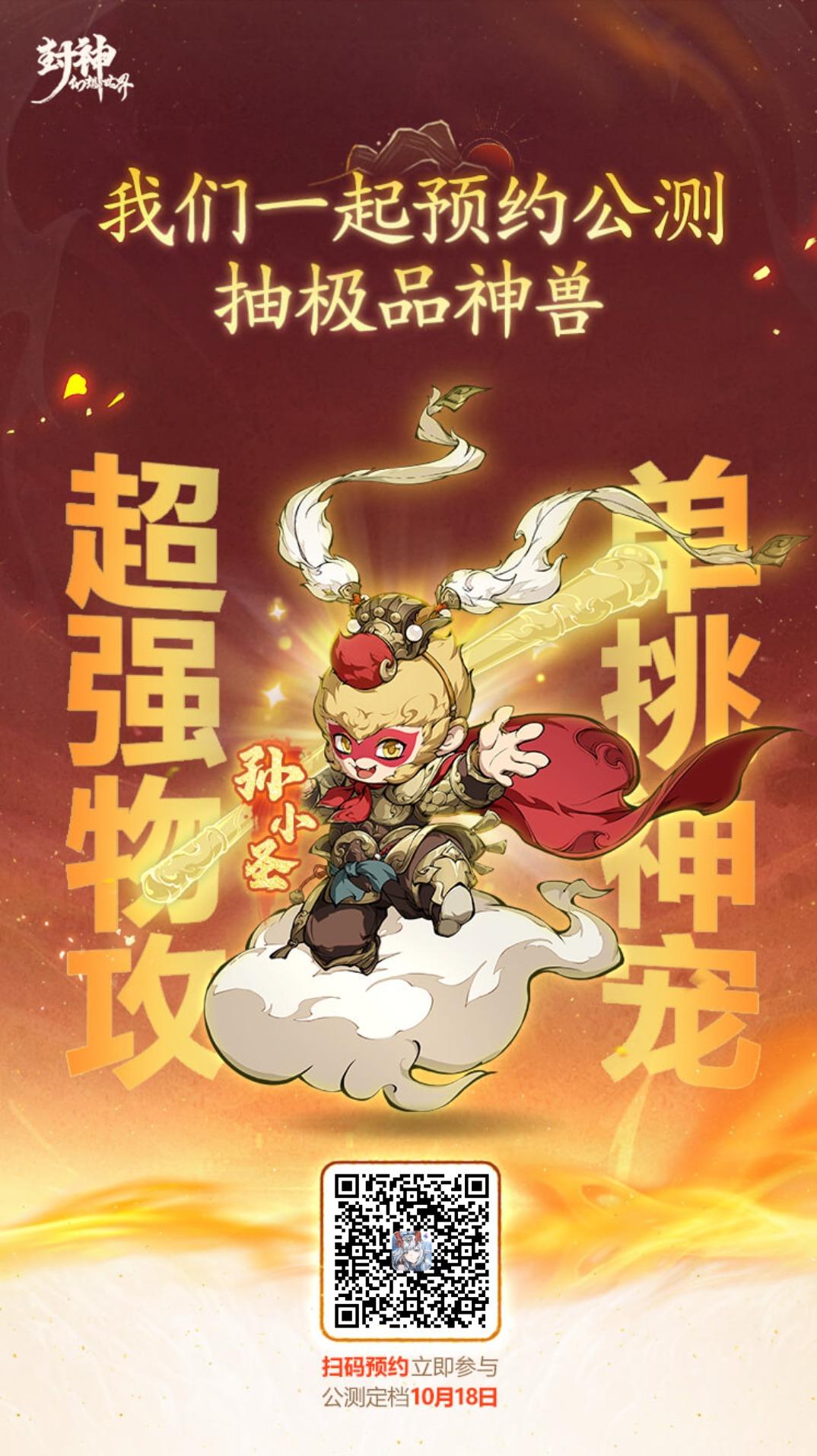 《封神幻想世界》手游公测定档10月18日,我们一起预约,领妲己新皮肤,抽顶级神兽·孙小圣或5万元现金大奖!https://actsapifshxsj.leiting.com/fshxsj/202407/reserve?inviteCode=026V7JX&mid=M487900