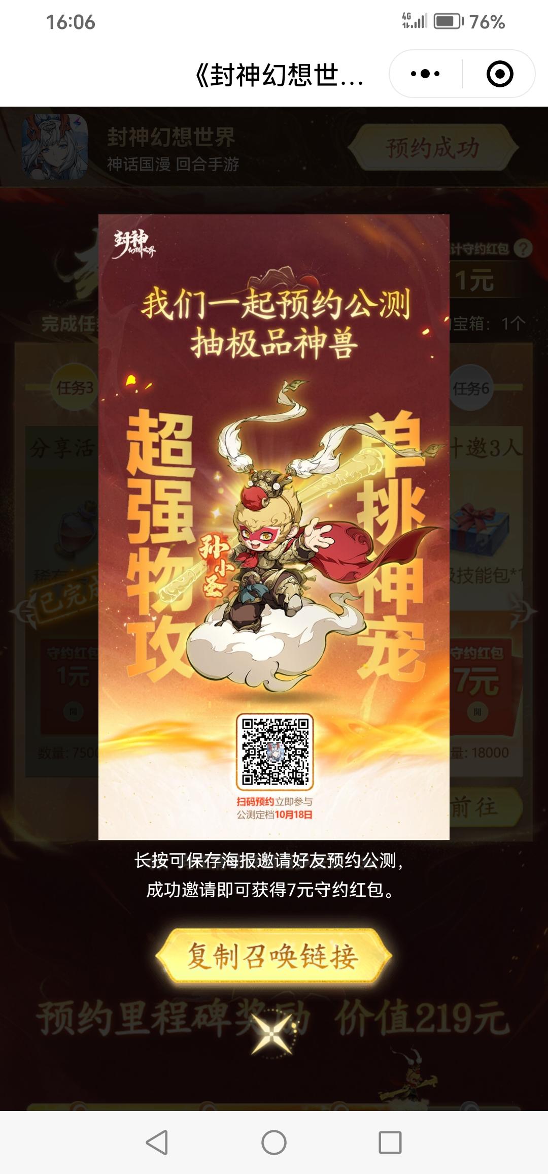 月卡党一起的可以整个交流群,进第一个区《封神幻想世界》手游公测定档10月18日,我们一起预约,领妲己新皮肤,抽顶级神兽·孙小圣或5万元现金大奖!https://actsapifshxsj.leiting.com/fshxsj/202407/reserve?inviteCode=026V8DC&mid=M489147