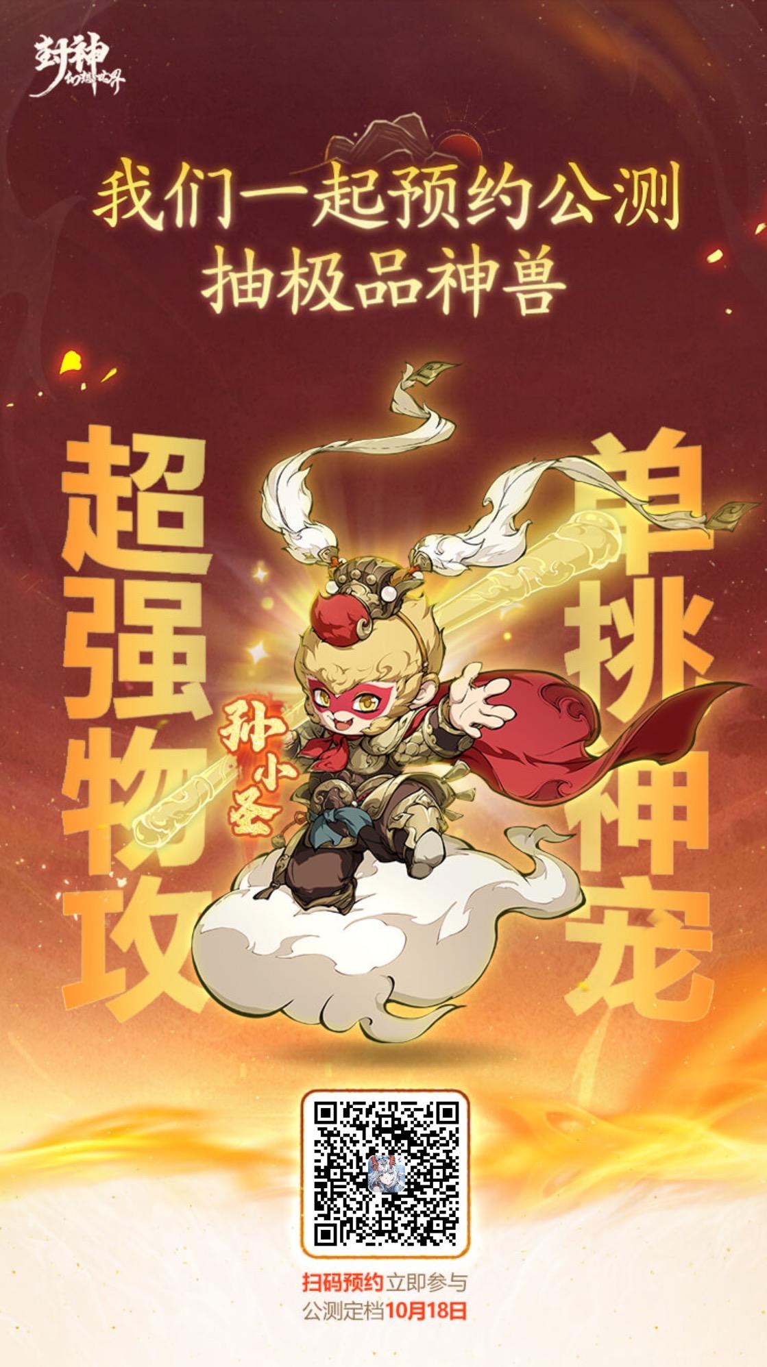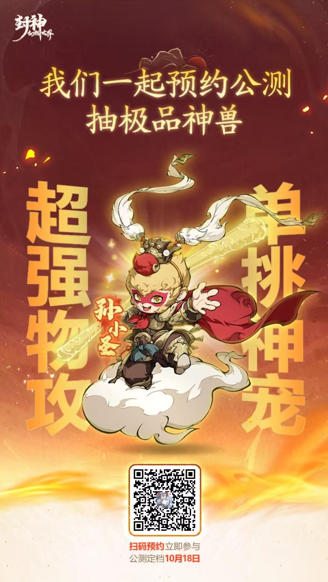 《封神幻想世界》手游公测定档10月18日,我们一起预约,领妲己新皮肤,抽顶级神兽·孙小圣或5万元现金大奖!https://actsapifshxsj.leiting.com/fshxsj/202407/reserve?inviteCode=026V5JB&mid=M489147