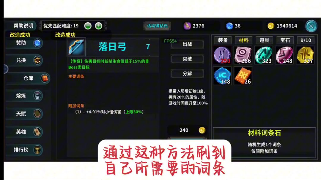 大家好,我是悲欢给予谁 今天简单出个副词条改造攻略 采用五件装备每件装备只保留一条词条并全部强化至满级熔炼一起 每个装备自己打上词条的次数超过10次可以使用清空石把他们数值清空节省金币 (每局对战结束的副词条就两个有一个需要的也能通过锁定来保留需要的词条节省增加词条的石头) 五件分开弄的主要原因是强化等级越高需要的话金币也就越高,是个节省金币的小技巧,而且单个强化数值好像也会加多(具体没测试但看的