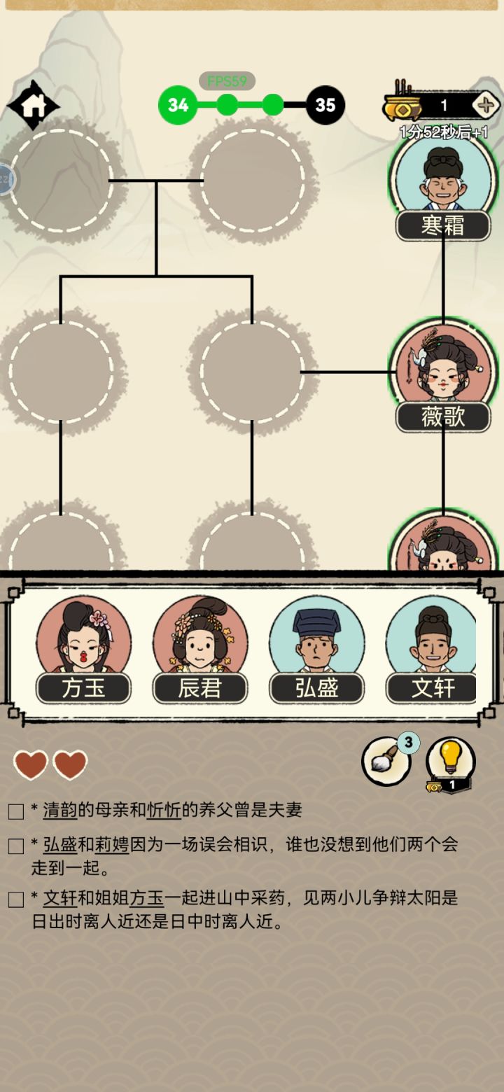 经常出现一部分被截掉了,根本看不见人名,甚至有时候看不见圆圈,填也填不了,导致没法继续关卡。另外自动的广告虽然提示说几秒之后就能关闭,但有时候会出现无法关闭广告,足足等了一分钟广告才播放完毕的情况。而且这种自动播放的广告是没有奖励的。随机自动跳广告目前感觉不是很舒服。而且在很难关闭的情况下,对于长达1分钟的广告来说,没有奖励挺离谱的。还是建议让玩家自选要不要看广告获得奖励。