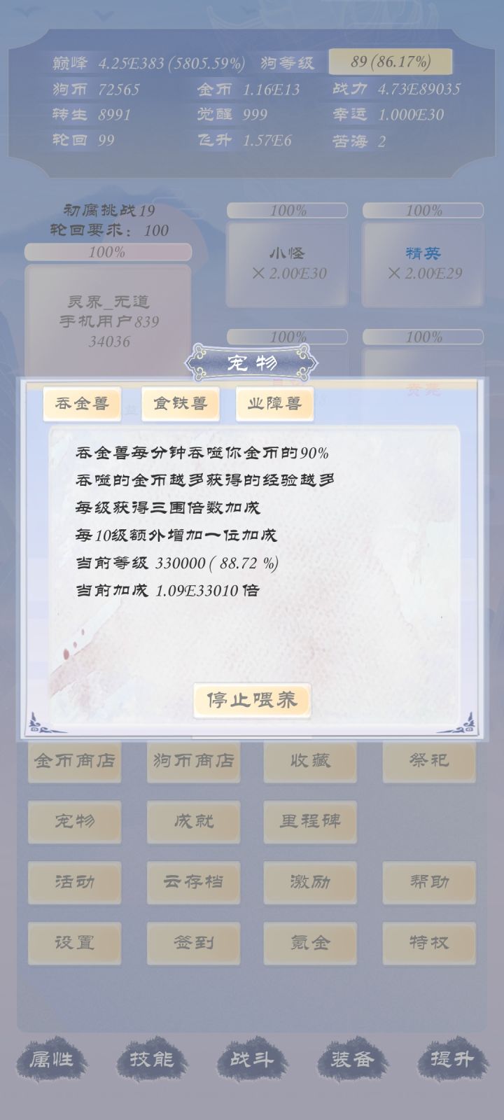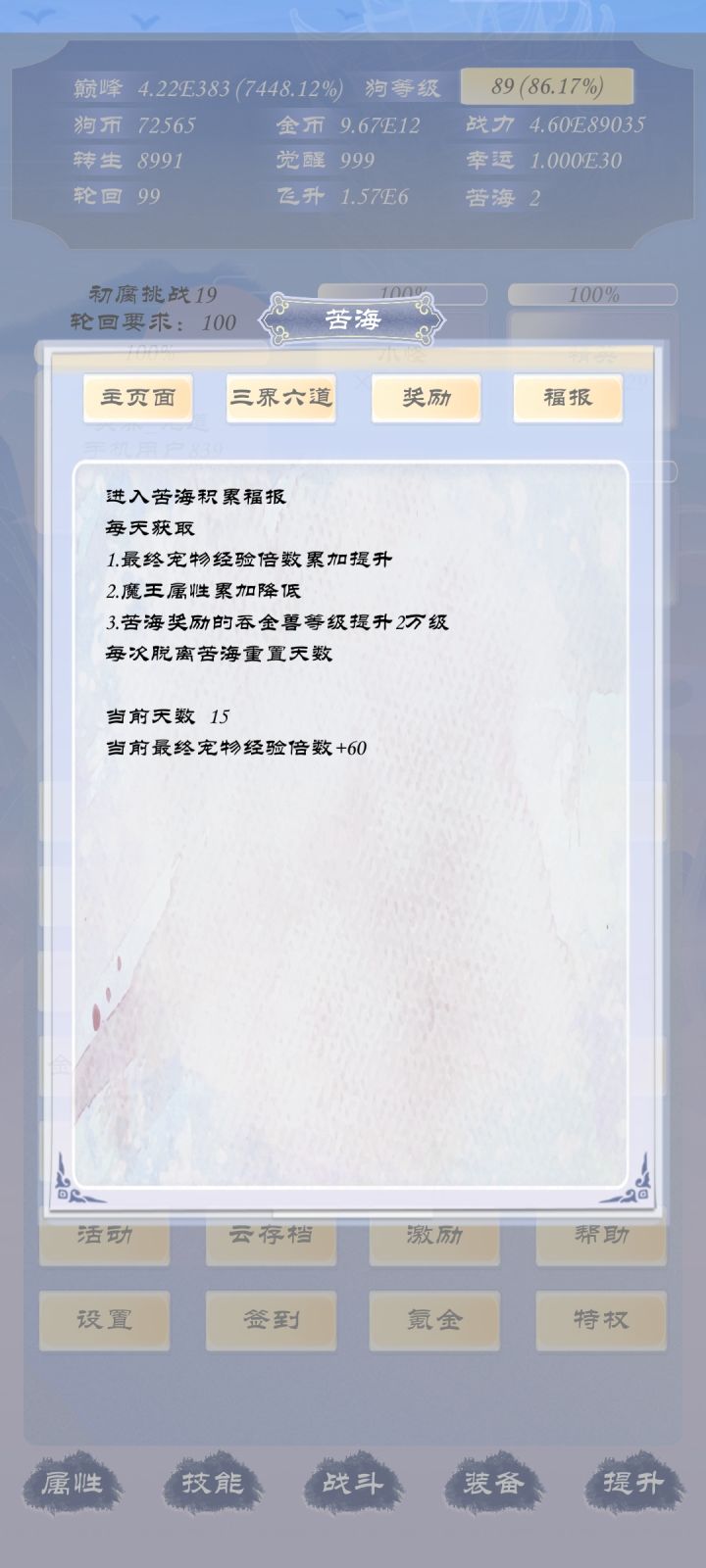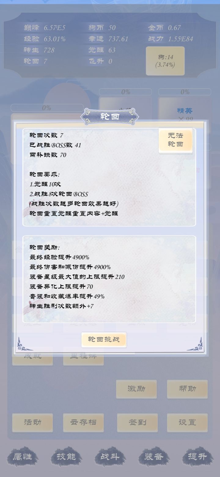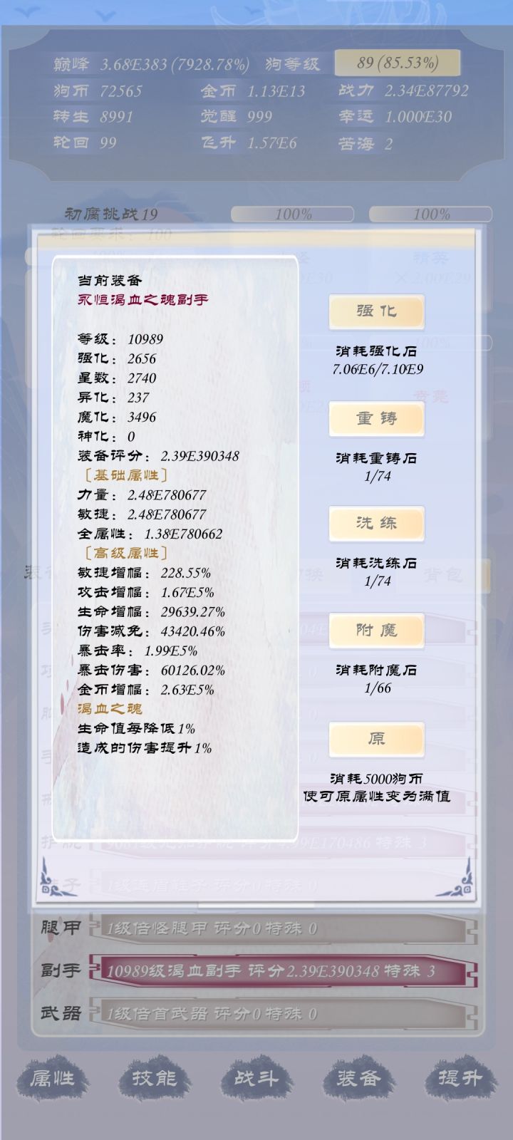 玩了一天了,目前轮3,16个小时基本前9个小时都在迷茫期,哪怕看了论坛的攻略,也特别迷茫,因为论坛攻略说太敷衍也不算,只能说不够具体。所以来讲讲个人的攻略,只针对从零到轮回结束,因为本人也才轮回3。这游戏前期的神攻和魔攻最重要也是最主要的增伤来源,游戏刚开始先把广告的10张副本券看了,然后狗币商店用副本券换狗币,能得到10000狗币,狗子先喂到10级,剩下的狗币全买百分比神攻,然后开始打怪升级。