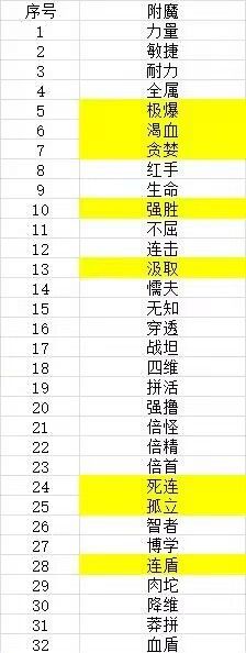 贴一下装备普通附魔属性,按顺序排列:力量,敏捷,耐力,全能,极暴,渴血,贪婪,红手,生命,强盛,不屈,连击,汲取,懦夫,无知,穿透,战坦,四维,拼活,强撸,倍怪,倍精,倍首领,死亡连击!!!!,孤立,智者,博学,连盾,肉坨之魂,降为,莽拼,血盾,力量🔁萃取刷到的属性截图不定时贴上来备忘。