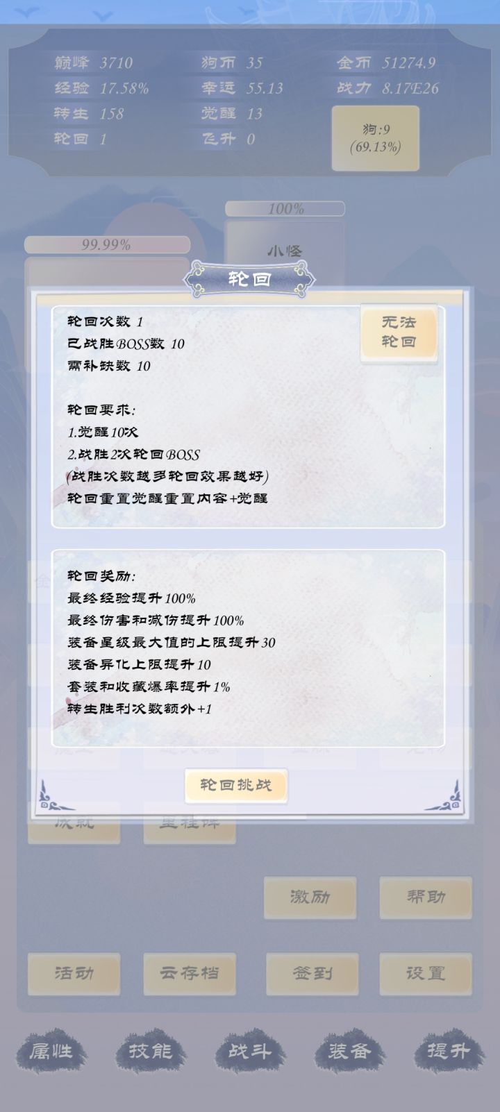 现在轮回3快轮回4了,到飞升感觉起码还要半个月有点遥远