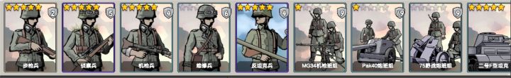 步兵推荐:首先是2块钱的好兄弟优选德国步兵伤害高护甲高些数量大于等于5时有较强杀伤力机枪推荐苏联的马克沁高贵的30射程42伤害比波兰的便宜1块伤害还高2点AT兵推荐美国的射程远伤害高,打中可以直接秒其他步兵AT炮推荐美国的37炮3S的CD,182的穿是同费中的佼佼者突击兵类各有特色以下是个人偏好苏联突击兵综合伤害较高(在第一个点步兵支援,突击冲点可以移动攻击)德国的较肉暴风突击队是因