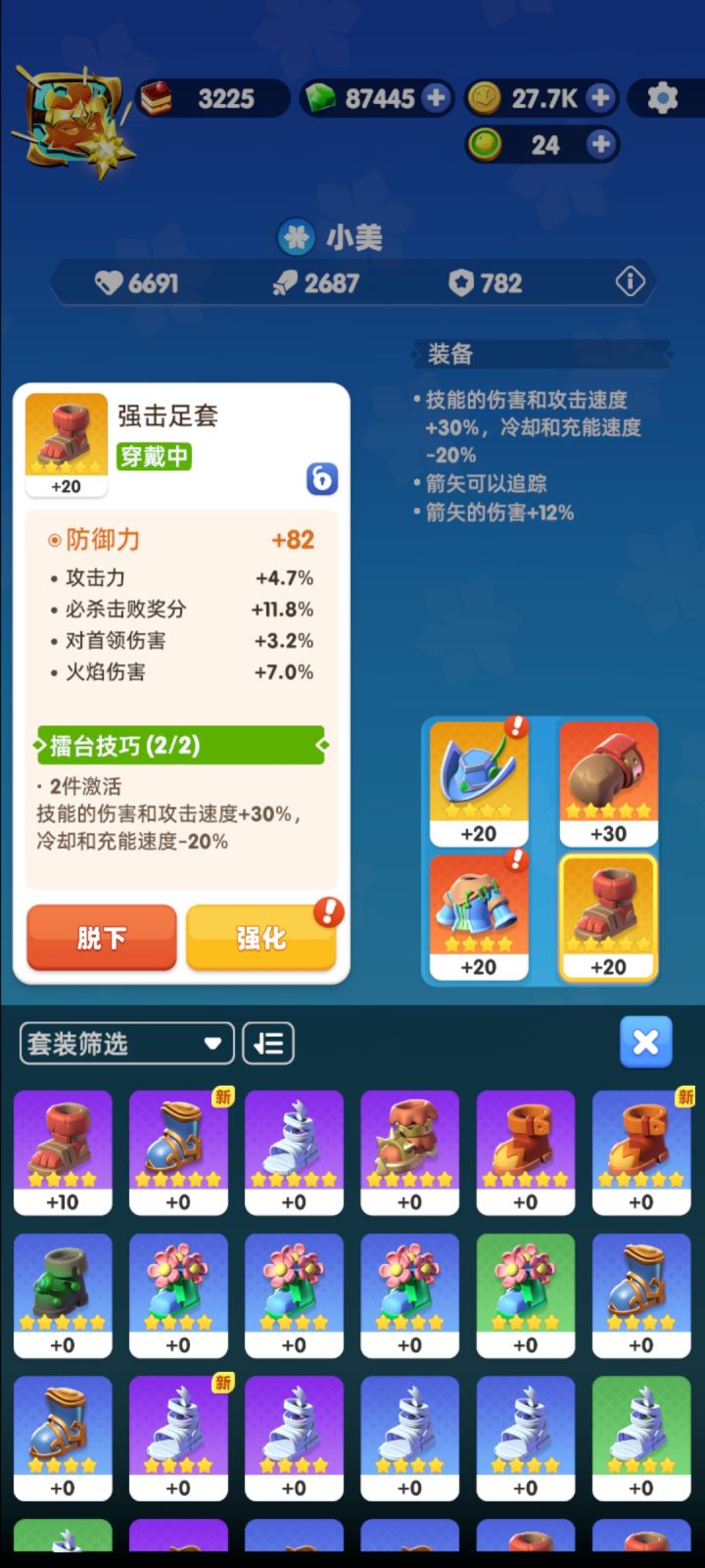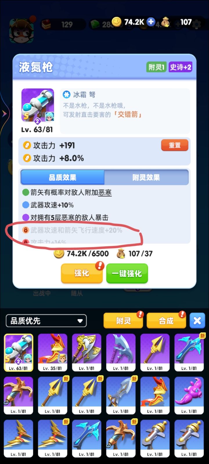 送给萌新要入坑需注意几点问题(游戏还是比较好玩福利也不错)0. 首冲送的送的武器绝对的T0级别的,大家可以一直用着,武器有让敌人减速(包括boss)武器暴击(五层恶寒)攻速升到橙色更是加攻击距离跟攻速,关于升级为橙色武器 技能 被动这些的都是3+2(3+2升橙色需要2个本体跟8个狗粮) 注:后面我所说的都是为橙色套效果 1,第一张图片推图套装效果角色:薇薇安特性为弩加15%攻击距离(七