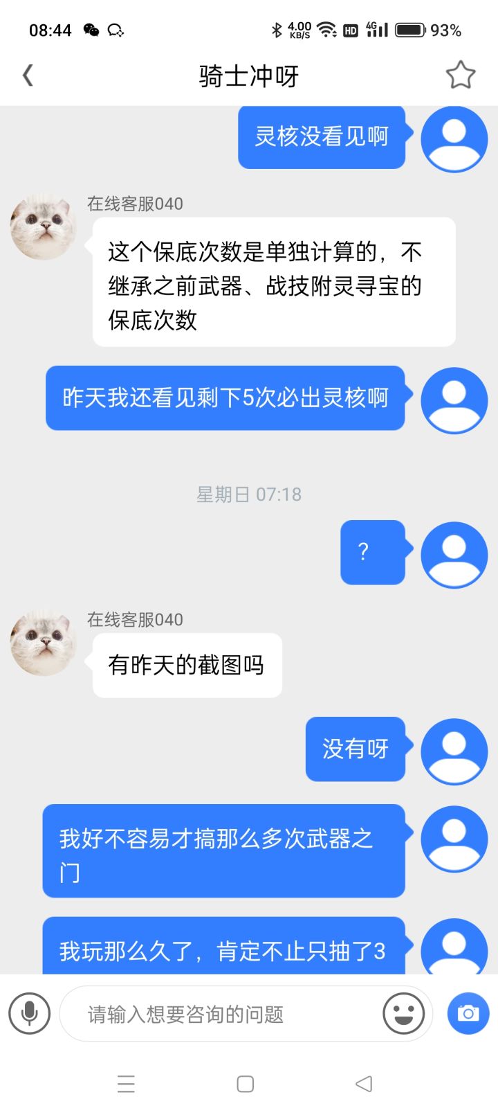 原本还剩下5次必出的灵核,随着捉怪物的活动一起刷新了次数,和客服反馈后一直没有用,真是垃圾游戏