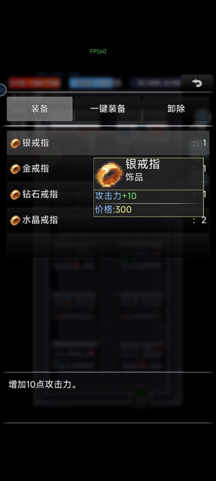 用金戒指是因为会加10攻击力和10%反击概率,比银戒指好,神秘人卖的俩个加命中和暴击的戒指没必要用,棒球棒自带40%暴击率15%眩晕概率,攻击力15只比优秀斧子低一点,打高级怪可以靠完美闪避和屏气凝神技能实现无限闪避和高概率暴击。并且因为棒球棒有群攻技能,搭配起来高速公路的群体怪也能秒。因为有概率平a眩晕,所以可以在不用眩晕技能的情况下安全使用回血技能了,只要蓝够,没有什么怪打的赢你