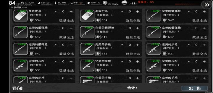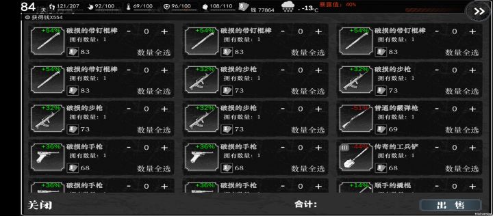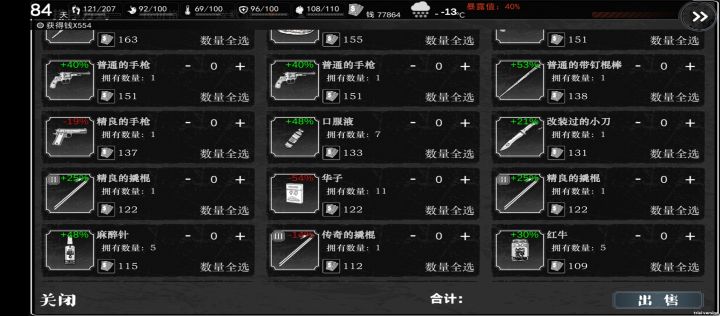 天赋:力大无穷、健身教练(必须有)剩下一个选力量、 钝器、命中、神偷或者其他经济类都行。(强力推荐神偷)每次去灾民区记得清清垃圾看看商店第一天,开局喂狗(不喂也行后面送肉可以可无)接着搜索捡垃圾,陆续搜索三次就好,多了不出资源点,不断点商店刷暴露值,有什么装备用什么优先用钝器(练钝器精通)一般只用命中值中间的招式。奖励优先华子、建材,接着烟头、加血、肉、木头平均分,商店优先买建