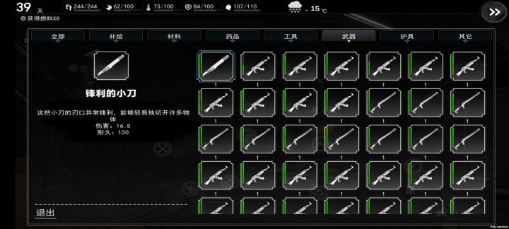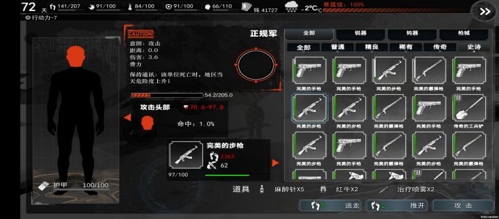 这玩法略微破坏游戏体验,毕竟几天就无敌了只要一个神偷天赋,别的都不重要1.开局两天整点组件把铲子撬棍锯条做了,然后就去药店,药店吃的多,免得饿掉状态耽误发育,顺便整点云南白药,没有也没事,就是容错低了,新手不想重开至少整一个,而且我是有点强迫症,看不得有异常状态,其实吃的够就行2.补满行动力直接去军营等危险程度高的地方连搜个两次再开始拿东西,不用管暴露值,低的话最好,能多几回合容错,有怪出来