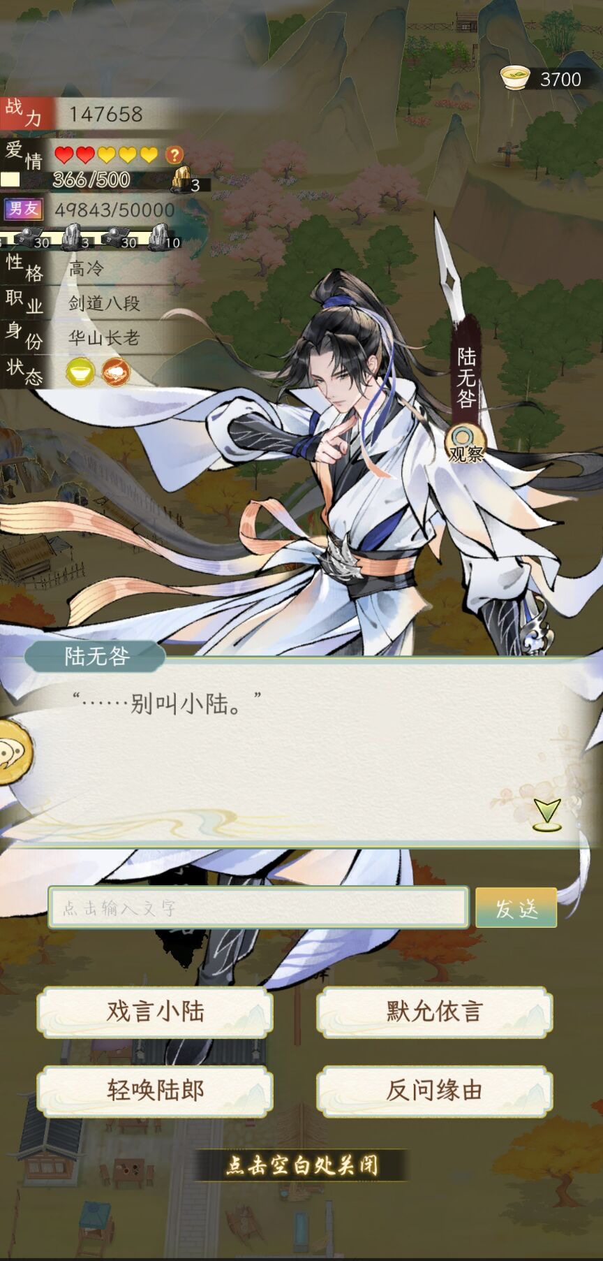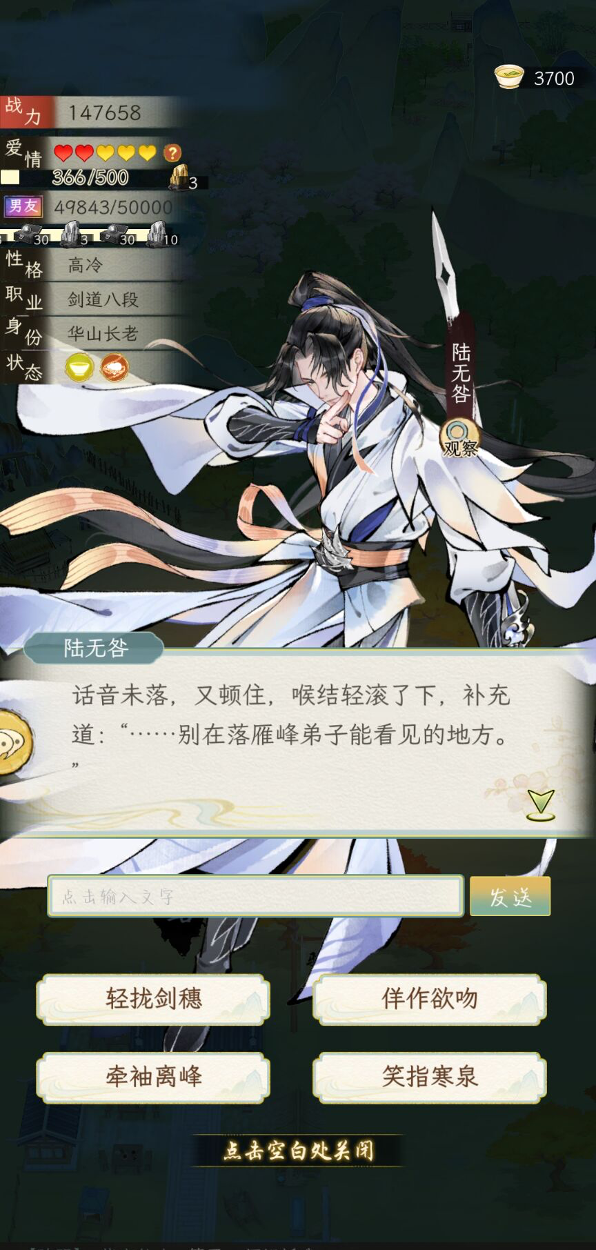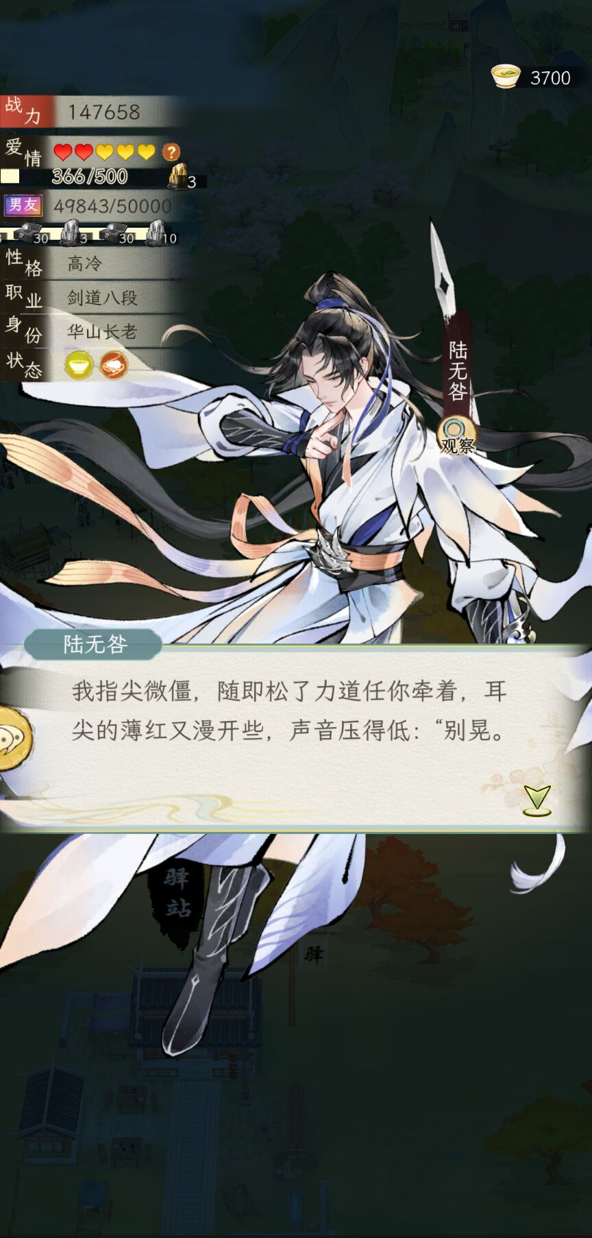 带上立绘调戏NPC可太有感觉辣!在书信的基础上加入了一个立绘的智能体,两边对话不互通,智能体不需要调,亲密度够高自带好感,高冷AI不再不解风情,可以打直球。同行的时候还是不错的,可以顺便调戏一下对象。但是难点是那些好感不够的,非常有边界感,根本撩不动,暂时是这样,连唐隽忘都难撩,跟他暧昧一下一直跟我提关于六扇门和唐门的恩怨(我入的六扇门)。然后,和书信比起来,智能体有时还会自带场景动作,但是有时