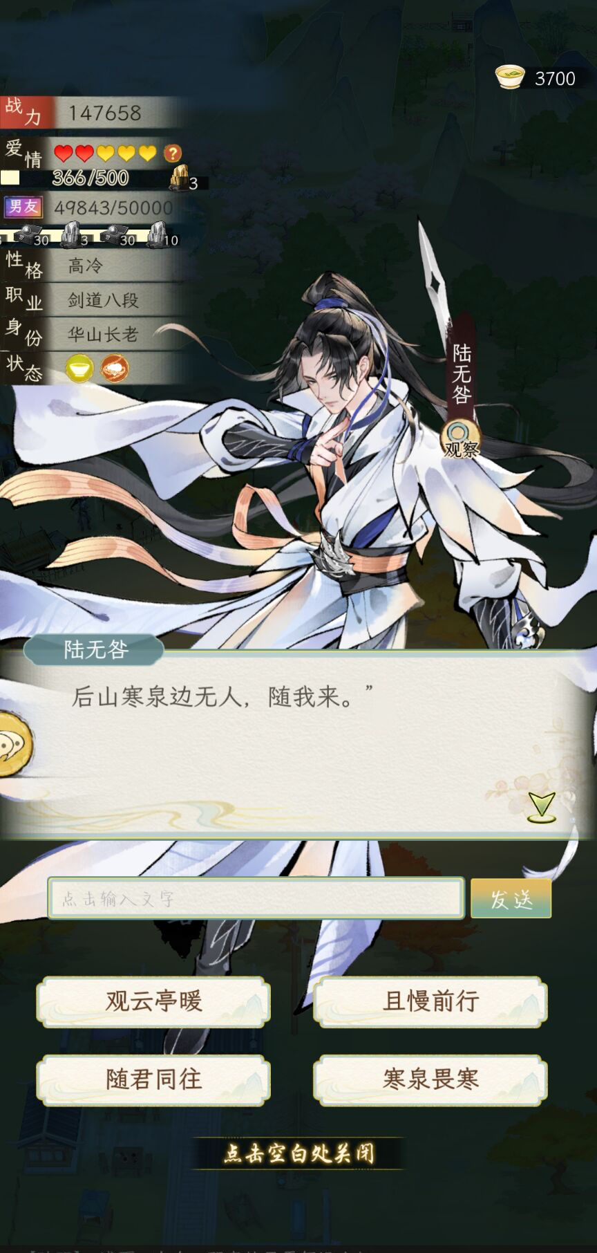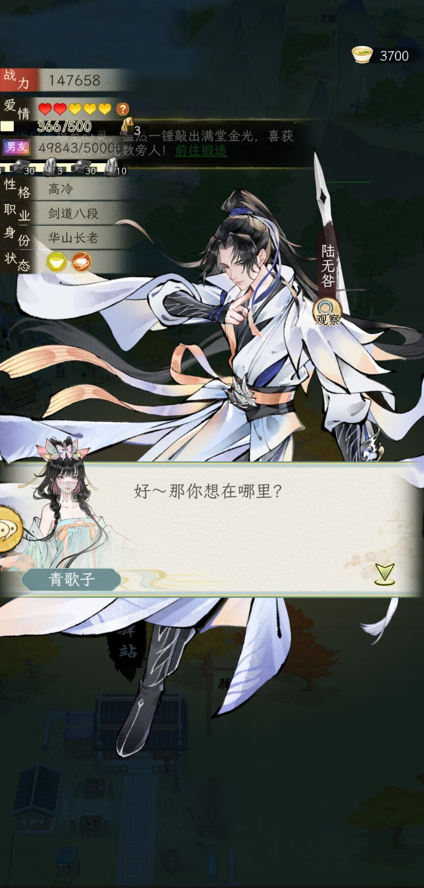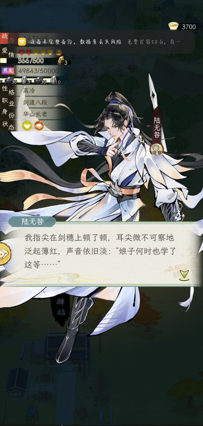 带上立绘调戏NPC可太有感觉辣!在书信的基础上加入了一个立绘的智能体,两边对话不互通,智能体不需要调,亲密度够高自带好感,高冷AI不再不解风情,可以打直球。同行的时候还是不错的,可以顺便调戏一下对象。但是难点是那些好感不够的,非常有边界感,根本撩不动,暂时是这样,连唐隽忘都难撩,跟他暧昧一下一直跟我提关于六扇门和唐门的恩怨(我入的六扇门)。然后,和书信比起来,智能体有时还会自带场景动作,但是有时