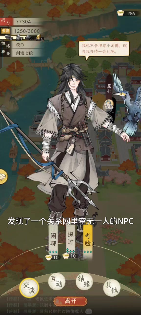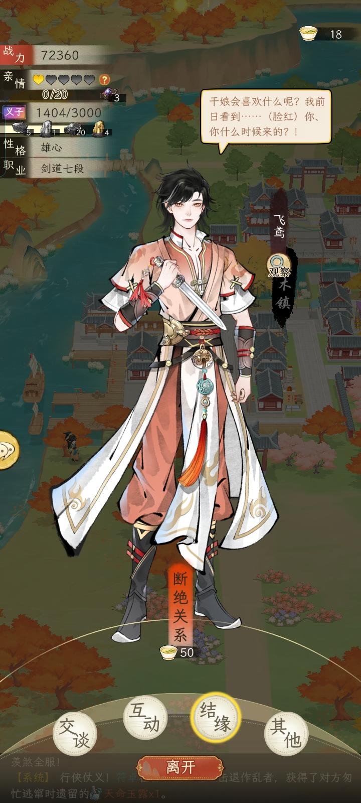 在家闲来无事,忽见一貌美女子背着木头和我打招呼并表达对我姑苏第七剑客的景仰之情,遂翻列表,发现有一NPC男友,大喜,心动不如行动,当机立断,挥手送出我的一生一世花,刷至至交遂表白,女子踌躇陷入犹豫,该女子男友遂来找我solo,败,吾遂得列表第一位女友。话说他男友打我一下真痛啊靠,随便劈一下劈我1/3的血量,还好最后挡了几次,落英剑给我回了下血量,险胜险胜。#华夏千秋 #游戏日常 #我在华夏千秋