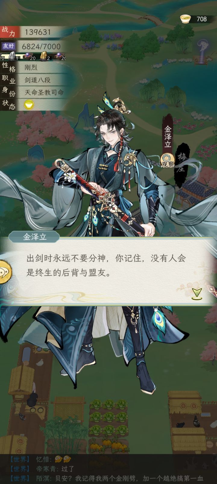 开服攻略1.首先一个半小时一次的种地,种多少决定你有多少东西烹饪和完成陶陶居的进度2.然后送礼,要去送400好感给书的,书抽的东西又可以继续送,然后给书的人必须是给第一张图的门派和主城声望的,这样声望可以拿锻造石3.先跑城市认识所有NPC,然后没事跑野外找NPC认识,在肝点就图鉴找不认识的寻路4,第一天27,攻击属性得到300,这样可以双四阵,两座武馆,后面就无所谓了。第一天27必须到。p