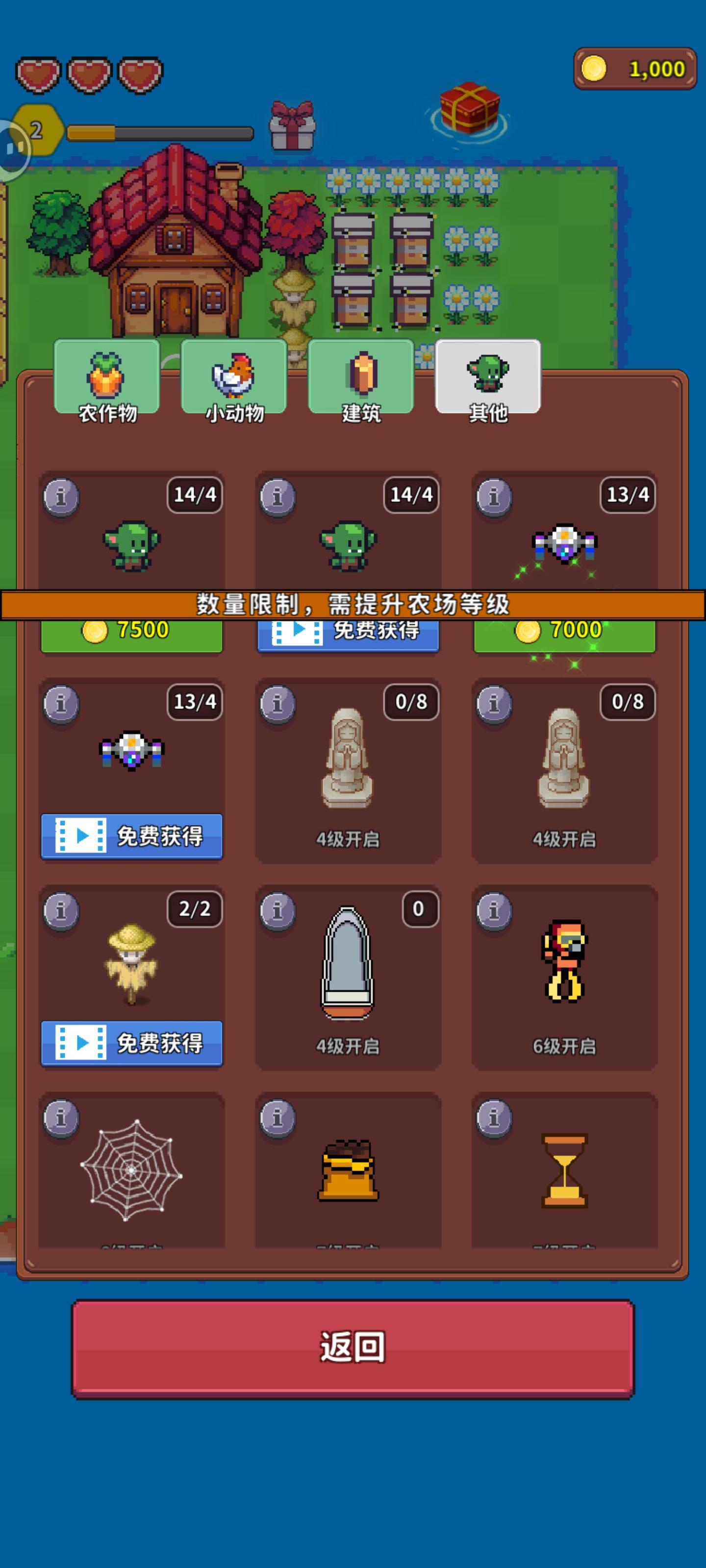 你游作为一个休闲种菜发展类游戏,居然能搞出一个梦幻西游玩法属于是作者没想明白头脑一热的更新。游戏更应该侧重农业扩展工业化。大胆一点把游戏的最终目标想象成去月球甚至是火星上面种菜1.满级后放开种植面积限制2.加入农产品产业线延长(比如拿铁做罐,再用罐和水果变成罐头)3.加入哥布林挖矿玩法(就像魔兽争霸 农民进矿洞出来带一包矿一样)4.加入制造机器和物流管道5.扩展地图npc和可探索性6