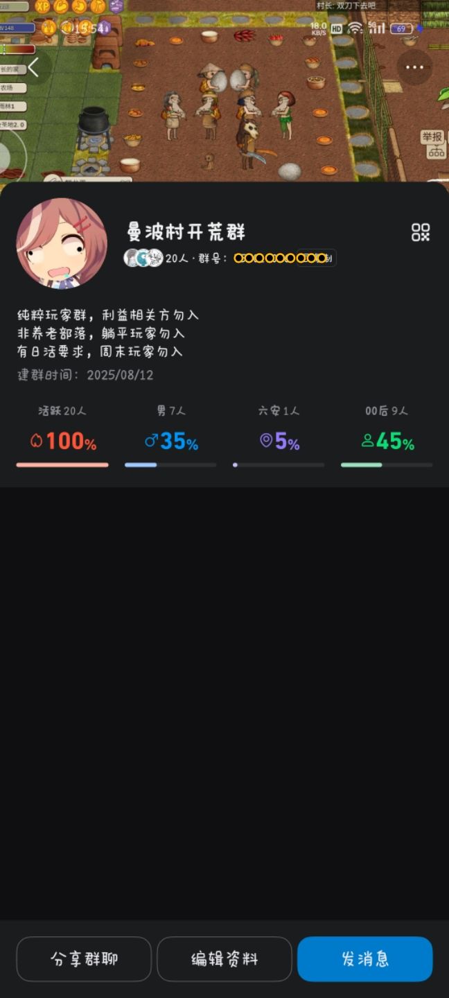 我游戏时间不固定有空就来玩目前玩了一段时间想找个不公开的部落,我比较喜欢盖房子装修这些有兴趣的酋长可以联系我