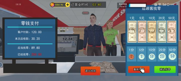 玩了一天觉得应该保留当天没有卖完的商品不然第二天又得摆上去很麻烦,其它地方都还行。建议有个找零的功能