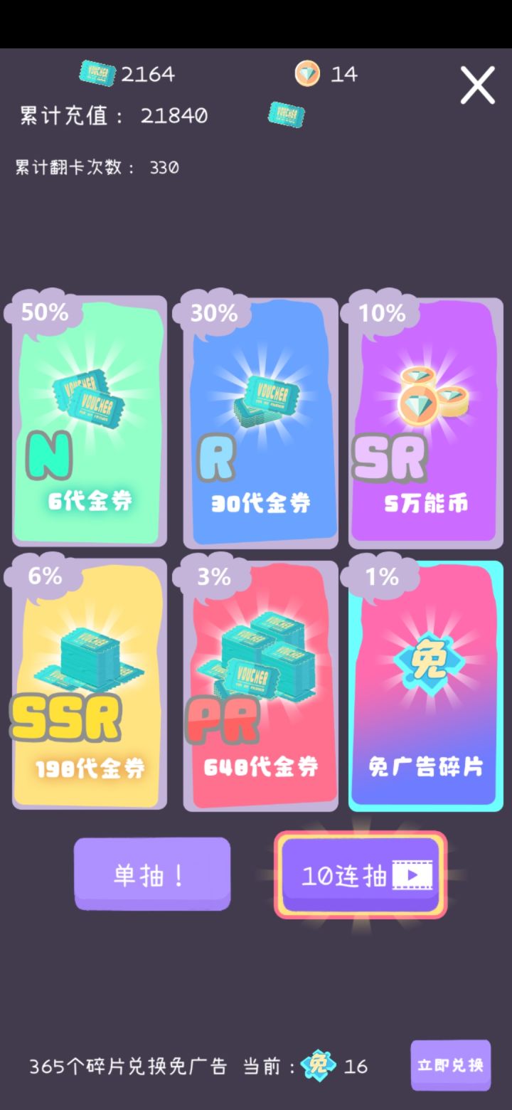 1点击右上角粉色的宝箱图标,观看视频,获得充值卷(咱也不知道为啥子这个面板一定要叫充值,仪式感的肯定jpg.)2点击右上角第一个紫色购物车标,进入第二页,购买会员,充值卷也就是看视频得到的卷,这里为了简单易懂,我们称它为视频卷好了,视频卷可以换幸运草,幸运草可以换金币(以上操作都在第二页)视频卷还有很多功能,它还可以兑换朋友卷和圣诞卷,其他的林林总总,大家可以自己摸索一下3接下来