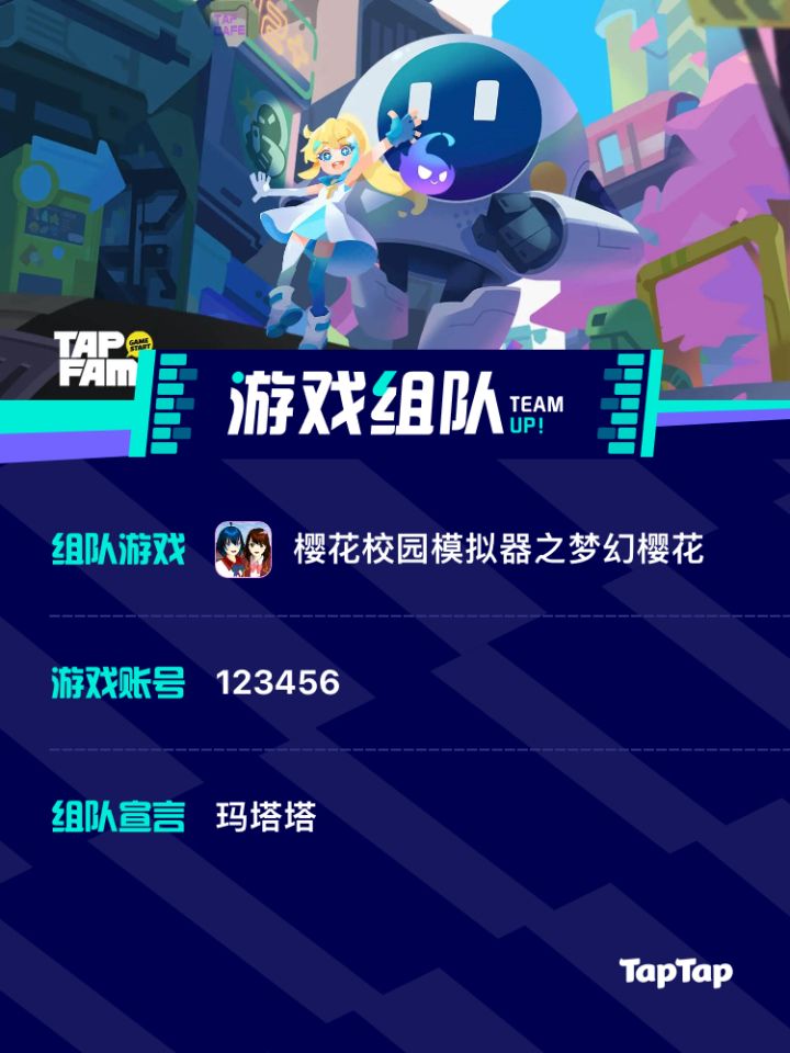 🚩游戏组队一起聊聊一起玩 ID:123456 宣言:玛塔塔 #噗噜噜实验室