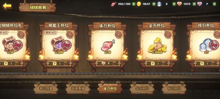 白嫖党的胜利!1.游戏的资源获取和适用: 游戏的资源分为,体力,金币,接引之誓,金啵啵,钻波波。(钻啵啵是氪金资源)①体力:游戏中体力的回复速度10分钟1点,体力上限为180点,推图和扫荡均一次10点,在前期推图方面,会补足性从邮箱给予你体力,直到通关2/3,解锁女巫小筑,是基本不消耗体力的。每日的体力获取:每日商店购买,每日巫女小筑,还有活动的奖励兑换。体力的用途:推图,推图,还是推图