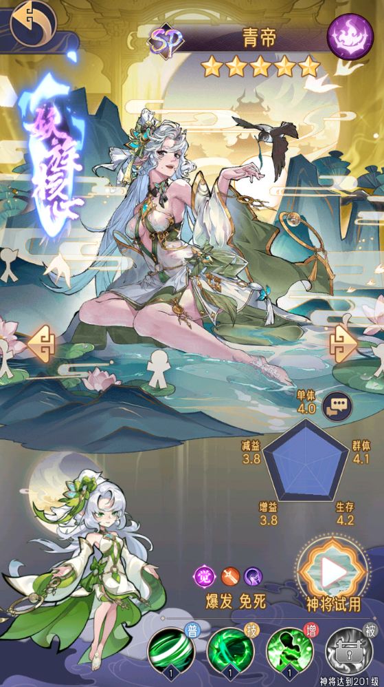 神将名称:青帝在《逍遥九重天》的浩瀚宇宙中,神将们如同璀璨星辰,各自散发着独特的光芒。而 青帝,无疑是其中极为耀眼的一颗。当你踏上这场充满奇幻与挑战的冒险之旅,深入了解这名神将,便如同握住了打开胜利之门的关键钥匙。无论是在紧张刺激的 PVP 对决中,还是在艰难的副本挑战里,青帝都有着无限的可能等待着你去发掘。准备好一同探索这名神将的神秘力量了吗? 一、基本信息1.神将类型:输出型2.