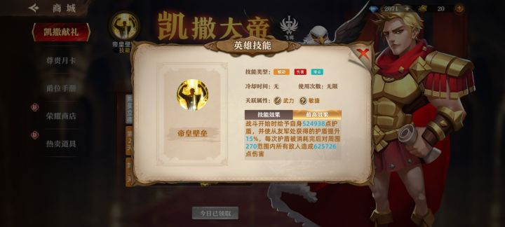 “不到没有退路之时,你永远不会知道自己有多强大。”作为古罗马传奇将领与政治家的凯撒,以其优越的才能成为了罗马帝国的奠基者。在游戏中,他亦化身为一位不可多得的战略英雄,以其卓越的领导力和战略眼光,带领军队征服四方。星级:★★★★★职业:飞将英雄类型:武敏型英雄,擅长提升近战部队伤害和攻速身为一个武敏型英雄,凯撒不仅武力值超群,敏捷度也是不容小觑,这些优势让他在近战部队如鱼得水。技能:帝皇