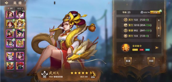 她出生于官宦世家,她多智略,兼涉文史,颇有诗才,她开创的时代,上承贞观之治,下启开元盛世,她便是我们中国历史上唯一的一位正统女皇帝——武则天普天之下,莫非王土。星级:★★★★★职业:奇谋 英雄类型:智敏型英雄,善于提升远程部队伤害和攻速武则天在政治斗争中展现出了心狠手辣、残忍恶毒的一面。这种性格特点使她在面对政治敌手时能够杀伐决断、老谋深算,并将军队牢牢掌握在自己手中。技能:皇
