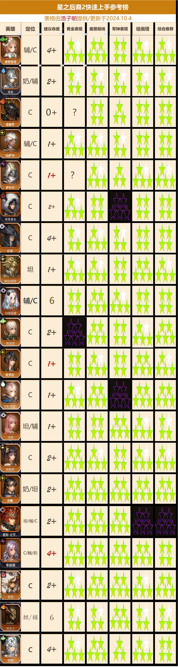 星之后裔2角色平民快速上手参考(不定期更新2025/2/1更新于)