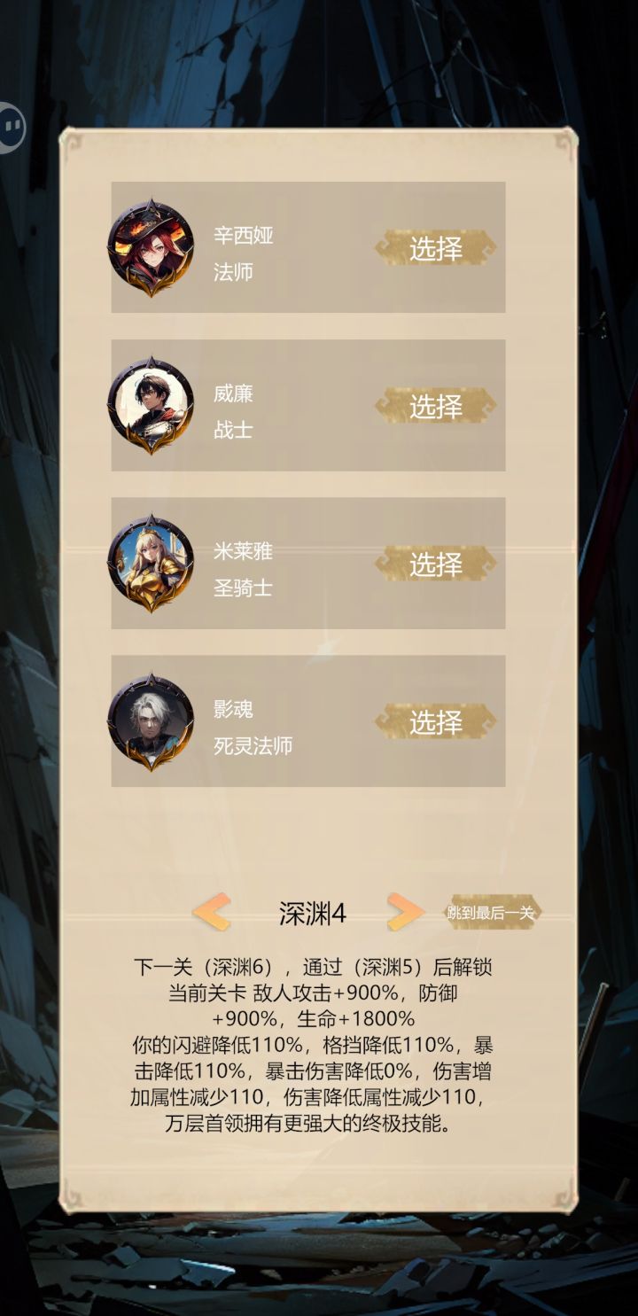 无尽关卡,普通两万开,噩梦。最后会有一个龙魂掉落。噩梦还没推到关底,到时候补充。测试了一下基础数据,怪物攻击先算闪避。闪避不到计算格挡率。这两层过滤掉的攻击不计算伤害和损伤。搭在身上的伤害,先计算防御,如果不破防,只-1,那就没什么好怕的。如果伤害高,会计算减伤比方怪物攻击一万,你防御2000,减伤50最后会损失4000血。减伤,闪避,格挡都有上限90%,这个数值为搭配技能达到的