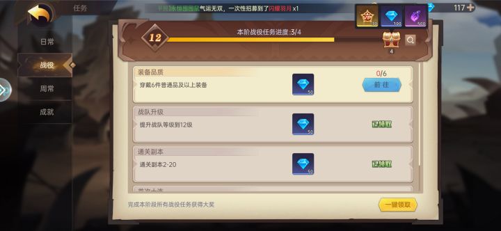 我已经22级,可是如视频所示,12级战役任务穿戴六件普通或装备完成不了,卡在12级了。这是我哪里没理解对吗还是bug,希望官方看到#决胜之心 #bug反馈